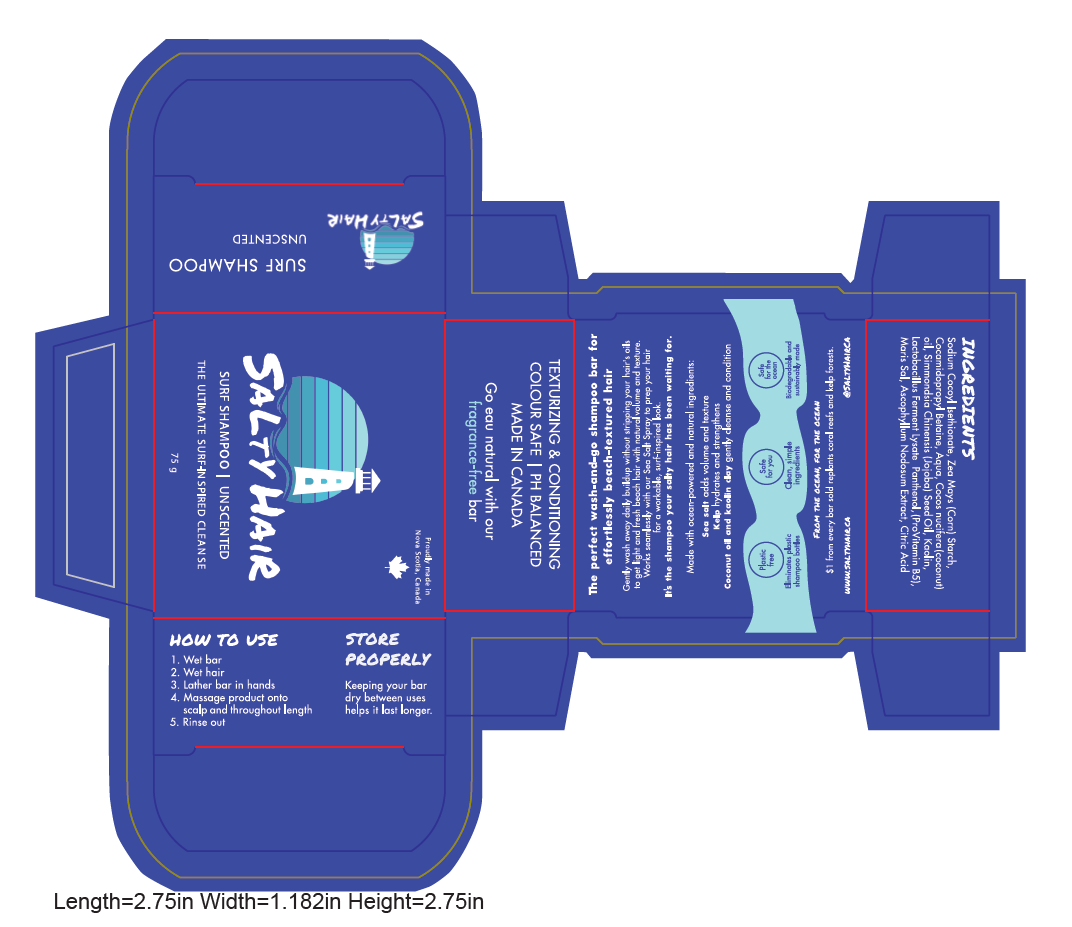 I helped prepare Salty Hair’s line of dry shampoo bar boxes. With four designs (and counting!) in total, they wanted a lightweight product that was thematic, informative and attractive to the eye. I worked up box layouts based on their goals, restructured image graphics, and prepared print-ready files for their use.